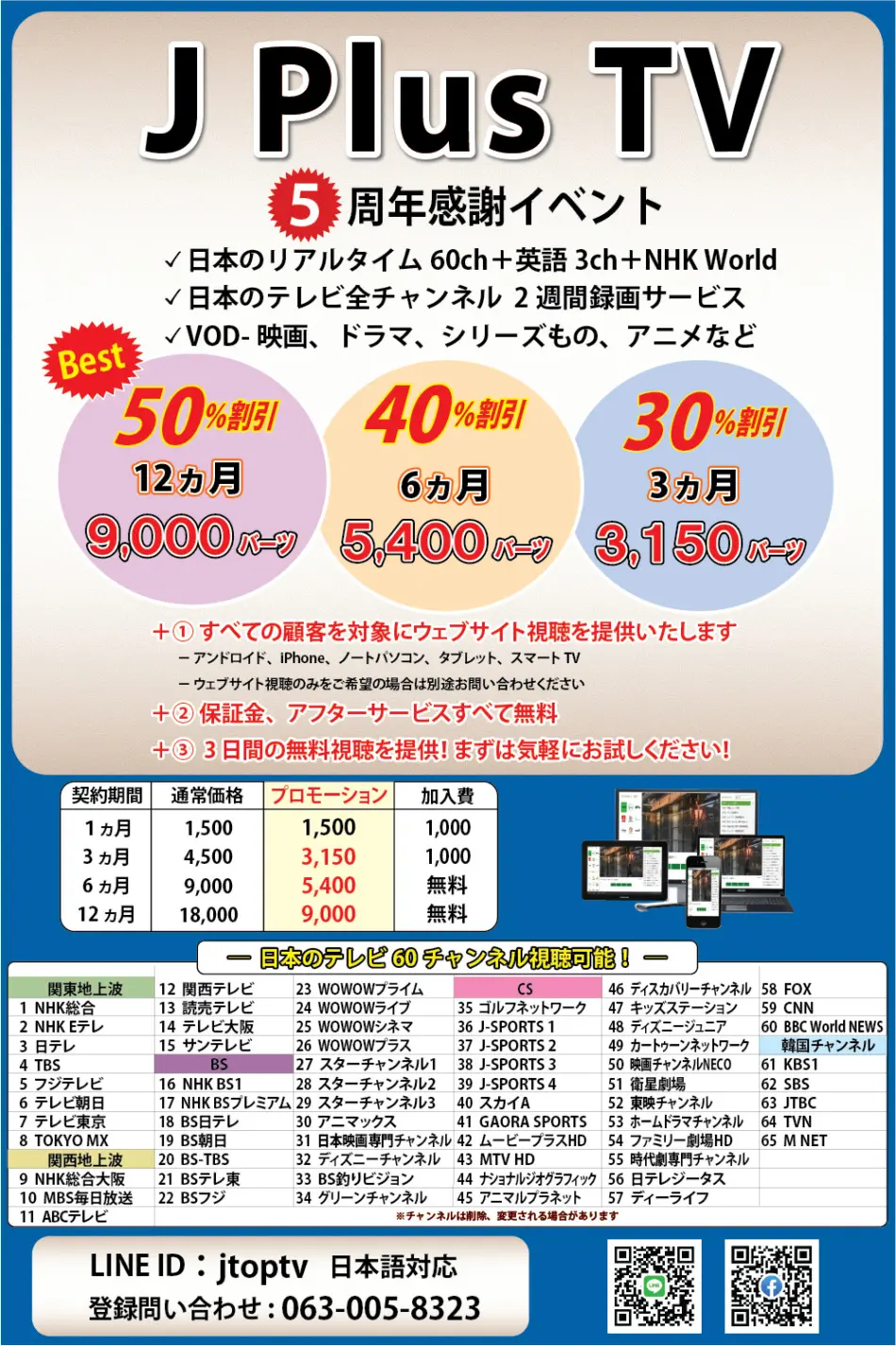 日本のテレビをタイで見るための「JプラスTV(J Plus TV)」では、創業5周年を迎え、感謝イベントを開催いたします。