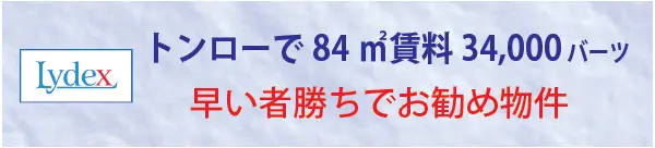 不動産会社「リデックス(Lydex)」が仲介のトンローで84㎡賃料34,000バーツはお得