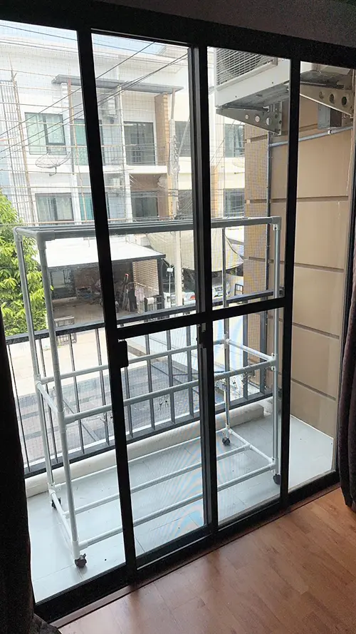 妻はタイ人なので、安いタイ人の業者に頼みたいと主張しましたが、やはり日本人の方が安心できるということでエリア外出張費をプラスしてサムットプラカーンまで来てもらいました。自然の空気をもっと室内に入れたいという妻の希望があり、前々から網戸の取り付けを考えていました。もちろん電気代の節約にもなります。