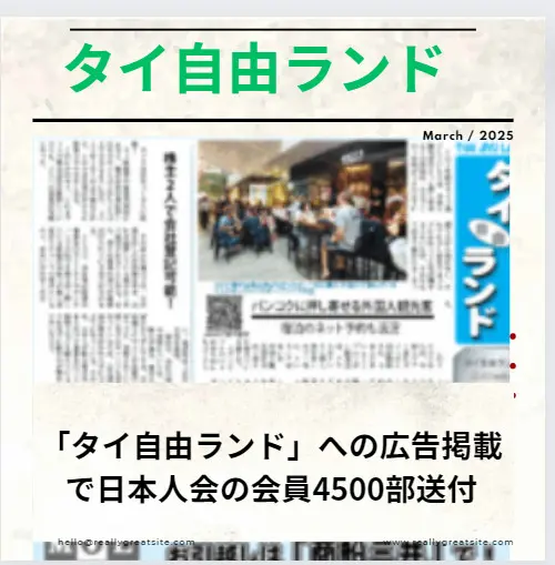 「タイ自由ランド」への広告掲載で日本人会の会員4,500部送付