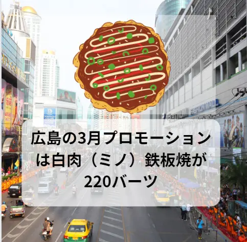 「お好み焼 広島」広島の3月プロモーションは白肉(ミノ)鉄板焼が220バーツ