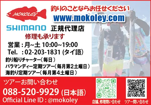 釣り具販売と釣りツアーを催行している「モコリー(Mokoley)」では、ソンクラーン休みに家族や友達と楽しめる海釣りツアーの参加者を募集しています。