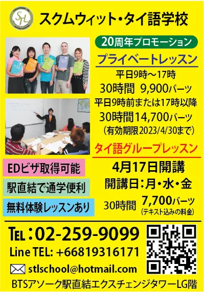 20周年の「スクムビット・タイ語学校」で期間限定プロモーション