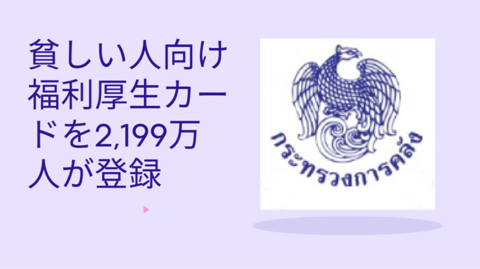 タイでは貧しい人の福利厚生カードが、再び4月1日から始まり、対象者は1,459万人で、本人が申請するのが基本。1ヵ月300バーツの受給で、さらに水道代、電気代等を合わせると、1人当たり1,545バーツになる。タイ政府は6年間の予算を立てており、総額は3,332億バーツにのぼる。