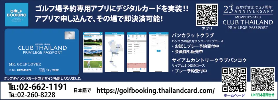 クラブタイランドのゴルフ場予約専用アプリはデジタルカードとなり、より便利に使いやすくなっています。アプリからその場で申し込み、即決済が可能になったので、クラブタイランドのオフィスまで行かなくても更新手続きができます。