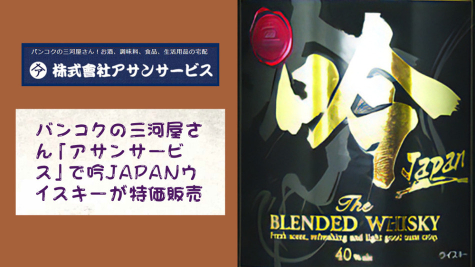 アサンサービスでは2ヵ月ごとの特売品があり、3月から4月末までは「吟JAPANウイスキー」が通常765バーツのところ、730バーツ、アサヒ缶ビール(24本入り)が通常1,152バーツのところ、1,099バーツとなっています。
