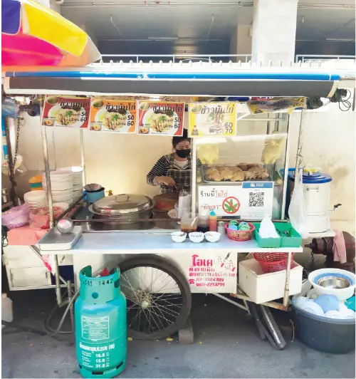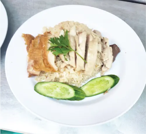 こんなところにもカオマンガイ屋さんがあったの?というのが、スクムビット・ソイ41を入った路上のストリートフード。メニューは蒸し&揚げの両乗せで60バーツ。水はセルフサービスで無料だ。ここのごはんは少し固めでパラパラチャーハンのような感じだろうか。スープもまずまずよい。タレは辛めで少し甘めだけど、これはこれでよい。プロンポン駅近くでこの値段で食べられれば十分だろう。