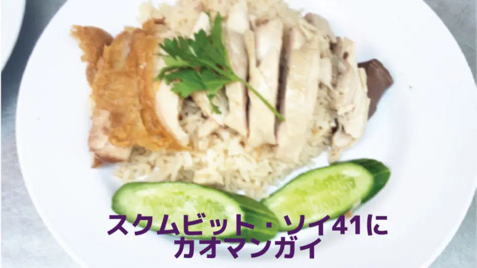 こんなところにもカオマンガイ屋さんがあったの?というのが、スクムビット・ソイ41を入った路上のストリートフード。メニューは蒸し&揚げの両乗せで60バーツ。水はセルフサービスで無料だ。ここのごはんは少し固めでパラパラチャーハンのような感じだろうか。スープもまずまずよい。タレは辛めで少し甘めだけど、これはこれでよい。プロンポン駅近くでこの値段で食べられれば十分だろう。