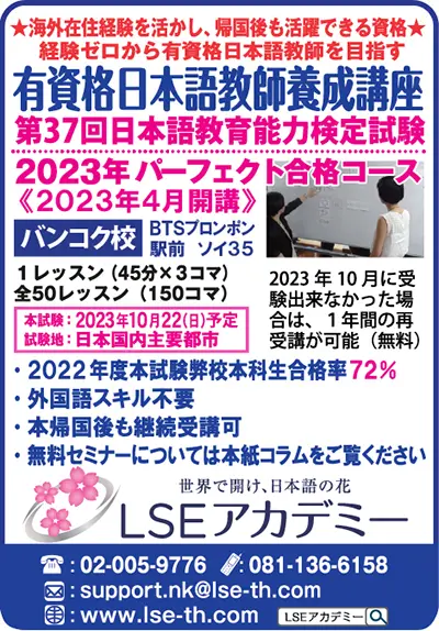 ★無料セミナー(教室対面・ZOOMで実施)の申し込みについてはスマートフォンの場合はQRコードをスキャンして申し込めます。教室の場所はスクムビット・ソイ35のGSマンション3階、3Cです。連絡先は下の広告を参照で。