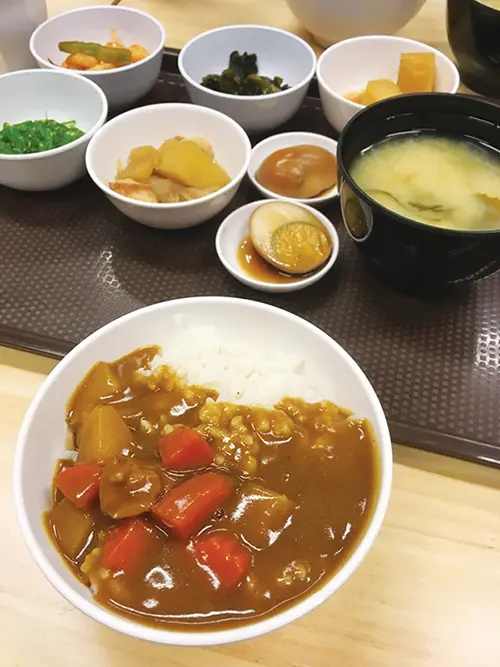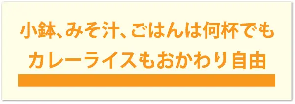 小鉢やごはん、みそ汁、カレーはお代わり無料なので、満腹になるまで食べられます。
