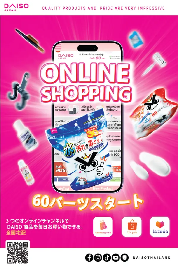 今回、ICSの2階に3月31日にオープンした60バーツショップのダイソーを見に行きましたが、このようにタワーマンションや高層コンドミニアムに住む地元のタイ人中間層をターゲットにした品揃えをしており、売り場の広さは466㎡で、アソークやトンローにあるダイソーと違い、かなり広い。「7,500品目を用意しており、将来的には1万アイテムとなります」と花岡社長は話しており、「60~300バーツの品揃えで、コンドミニアムなどに住む層なども取り込んでいく」と花岡社長は話し、店前にアロマの商品を並べ、ひと味違うダイソーの雰囲気を出しています。