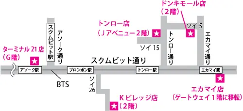 タイ国内で100店舗以上あるダイソーは、日本人が多く住むエリアでは、BTSエカマイ駅直結のゲートウェイエカマイの1階、エカマイ・ソイ5のドンキモール2階、トンローのJアベニュー2階、スクムビット・ソイ26のKビレッジ2階、BTSアソーク駅直結ターミナル21の地下(G階)など。今回紹介した商品もタイ国内のダイソー全店舗で販売しています。