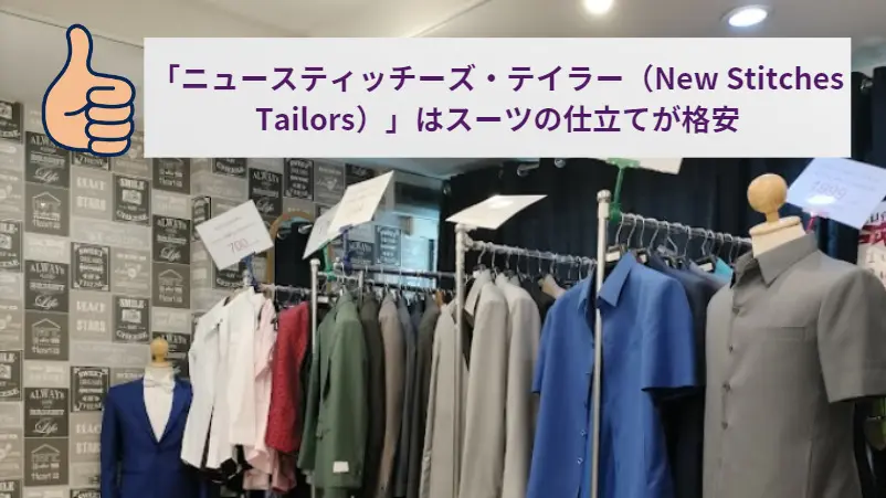 「ニュースティッチーズ・テイラー(New Stitches Tailors)」はスーツの仕立てが格安