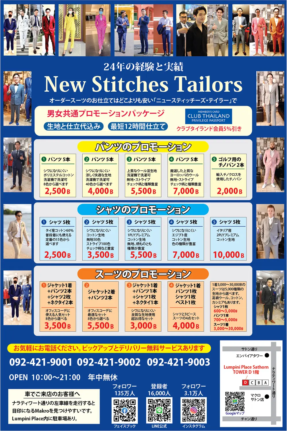 タイ在住者だけでなく、海外からの観光客にも人気のテイラー「ニュースティッチーズ・テイラー」は、タイで24年の実績がある仕立て屋です。