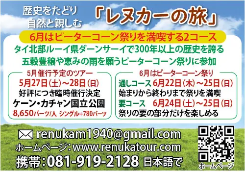 バンコク発着の楽しい旅を催行している「レヌカーの旅」では、参加者を募集中。