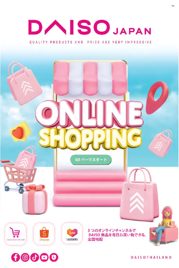 タイのオンラインショップであるショッピーやラザダのダイソーページでは、各商品が紹介されています。タイ国内ならどこでも届けてもらえるので、近くのダイソーで見つからない商品はオンラインショップで探してみてください。