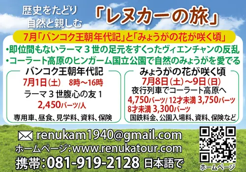 バンコク発着の楽しい旅を催行している「レヌカーの旅」から7月のツアー参加者を募集中。