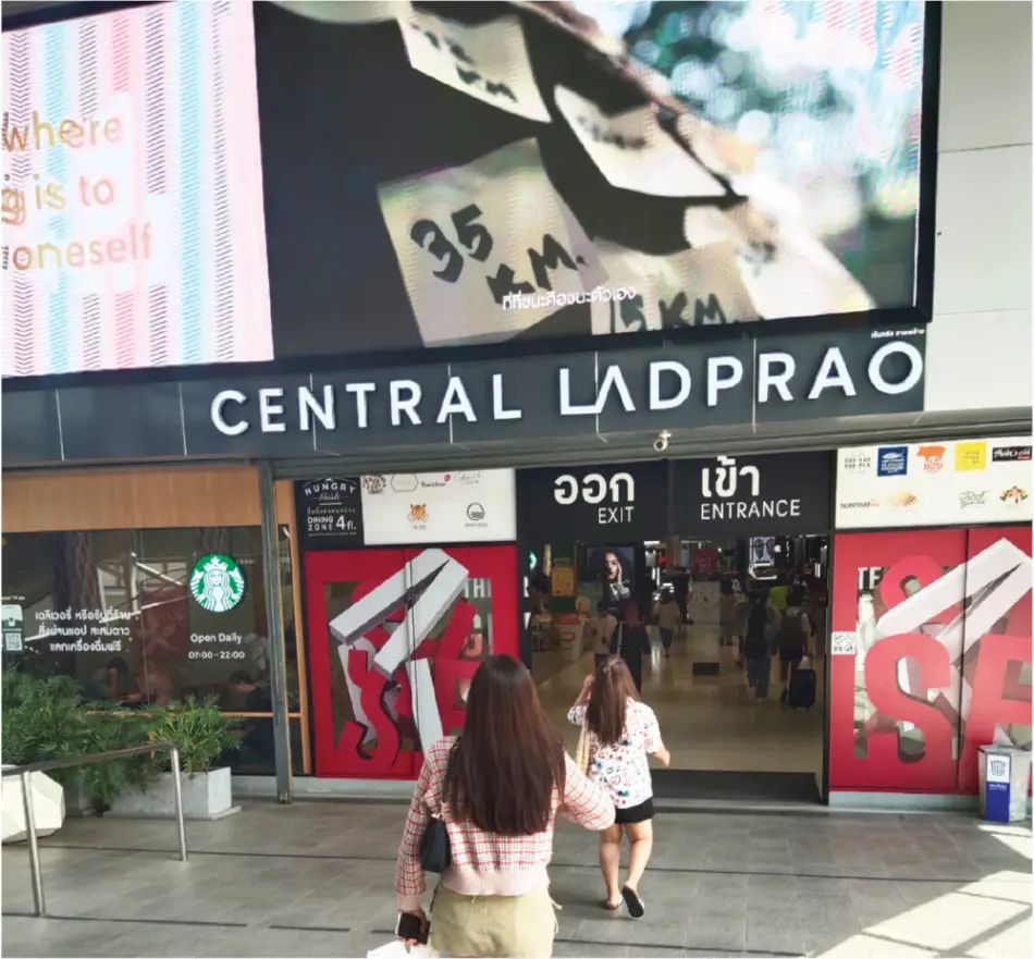 BTSで1本で行けて、プロンポン駅からは25分ほどで行けるので便利。ハーエーク・ラプラオ駅に到着すると、改札を出ればもうそこがセントラルの入り口になっていました。入り口の右横にモスバーガーが出店していて、これは最高の場所だなと思いました。