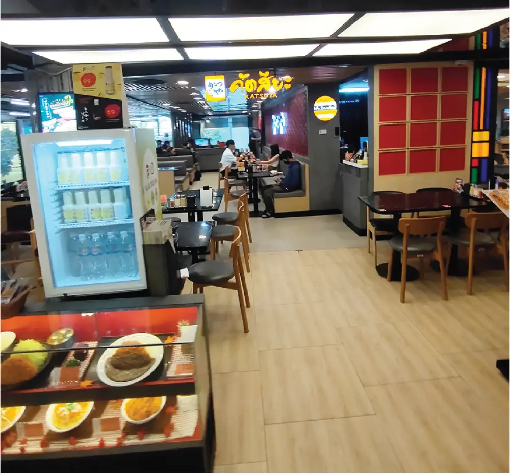 食事処が集まるG階は、それぞれの小さなスペースで簡単な区切りがあり、日本料理店のオンパレードでした。天丼のてんや、かつや、8番ラーメン、ペッパーランチ、吉野家、まい泉など。やはり個人店ではなく、日本でのチェーン店はコロナに強くて、ちゃんと残っているようです。おっと、寺岡餃子もありました。プロンポンのエムクオーティエで、コロナ前にはなくなってしまいましたが、まだ チェーン店として、バンコクでがんばっているようです。