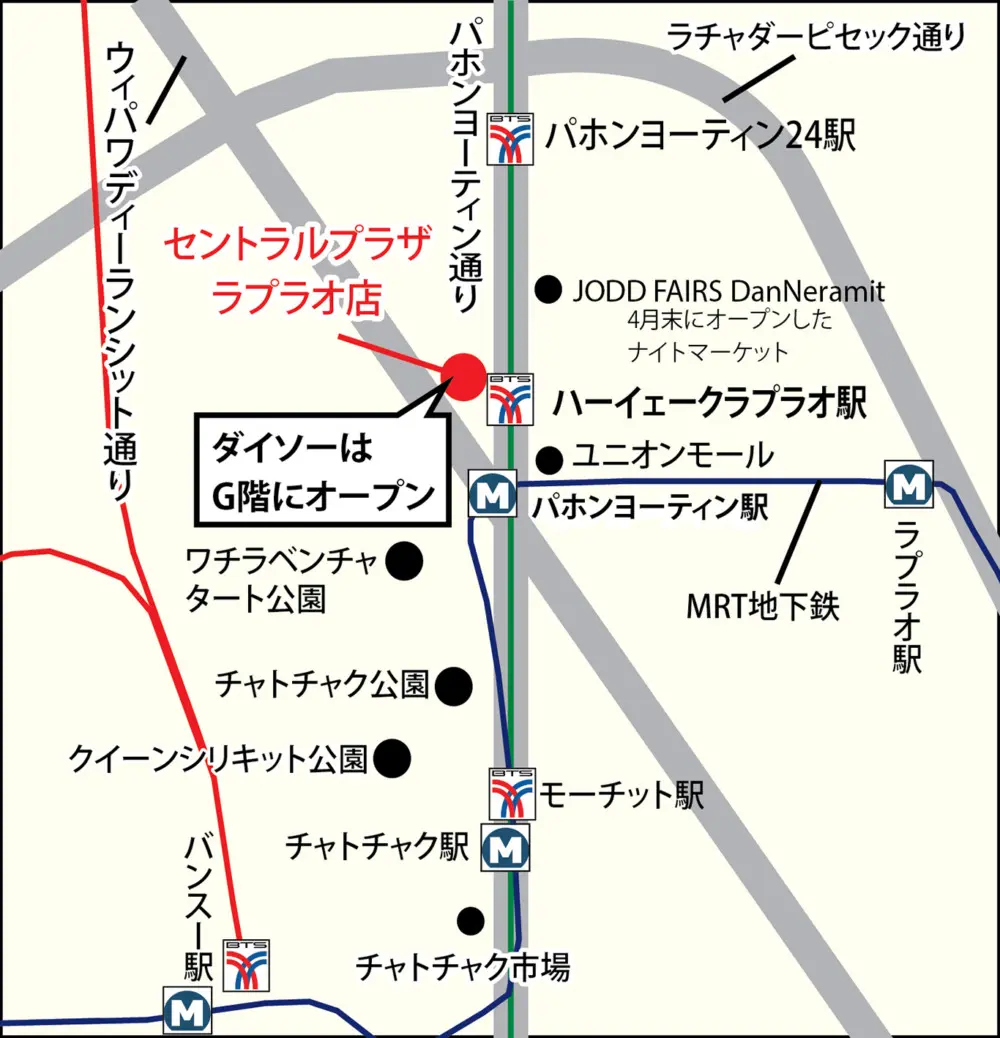 60バーツショップの「ダイソー」が、セントラル・ラプラオの3階からG階に移転オープンしたというので、BTSに乗って行ってみました。