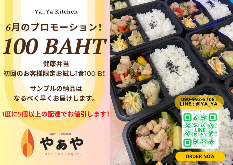 健康弁当宅配「やぁや 」6月は初回お試し5個以上注文で1個90バーツ