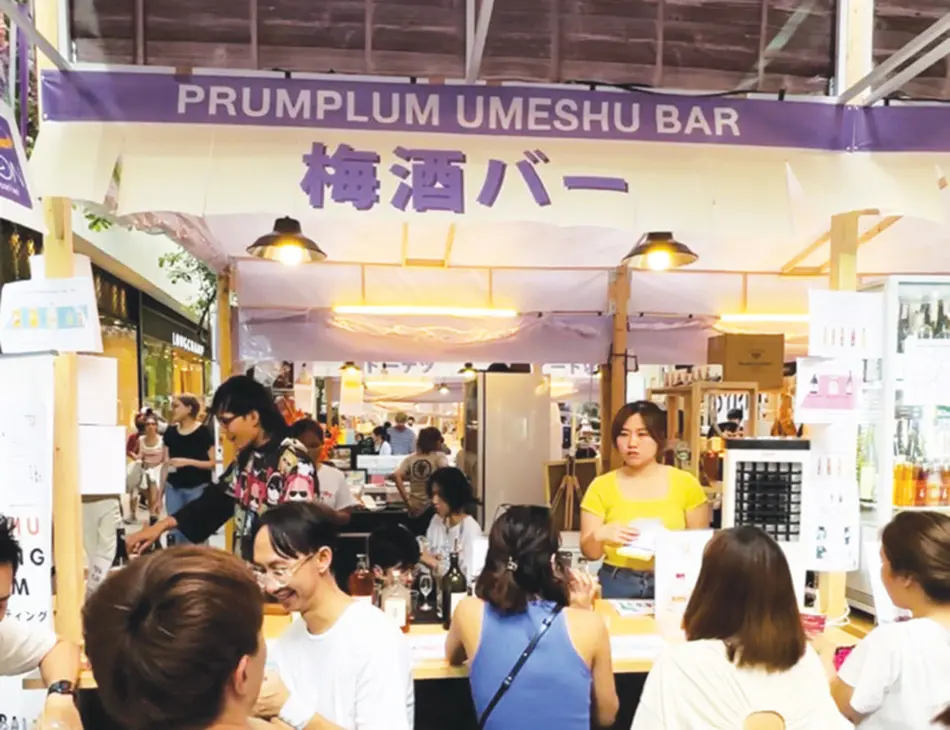 イベントでは、たくさんの人で溢れており、お店には食事を楽しむ日本人やタイ人がいました。たくさんのおいしそうなお店がありましたが、その中でも特に気になったのが、「梅酒バー」。5種類の違う梅酒をテイスティングできるお店で、多くのタイ人で賑わっていました。