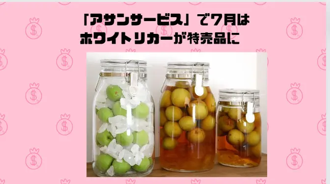 「アサンサービス」で7月はホワイトリカーが特売品に