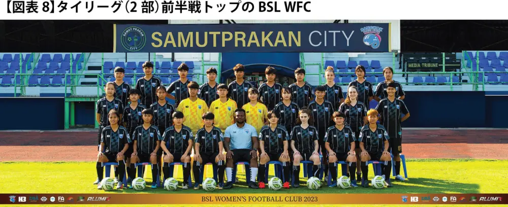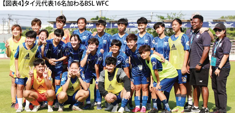 タイの女子代表は、男子代表と違い2015年と2019年の2度にわたってワールドカップに出場している。女子代表を支えるのが2009年に設立されたタイ女子リーグで1部リーグと2部リーグがある。これまで、女子リーグは、各県地域のスポーツ学校等が中心であったが、最近新たな動きとして、西欧のコーチ陣を中心にしたクラブチームに注目が注がれている。その一つがBSL WFC(Women’s Football Club)である。昨年は2部リーグで最下位であったが、今期は突然トップに登場した(図表2)。