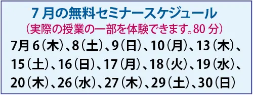 定期的に開催される無料セミナー(80分)では実際の授業の一部を体験できますので、ぜひ一度日本語の面白さに触れてみて下さい。途中で本帰国になった場合も、日本国内継続受講制度があるので安心です。