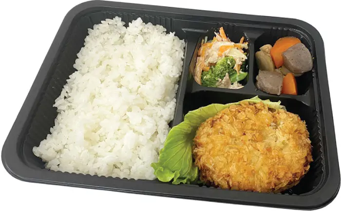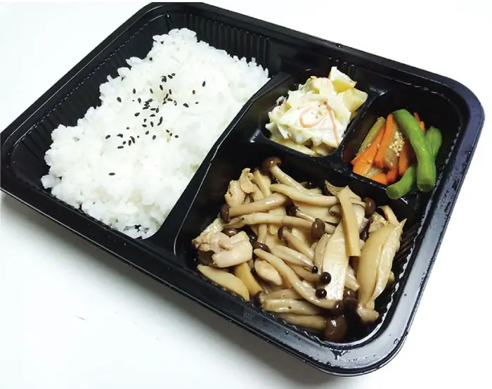毎週末に献立が発表されるので、LINEを登録して献立を確認してください。日替わりのおかずは肉や魚を使ったメインのほかに、野菜メインの付け合わせが2品付きます。ごはんは日本米を使っています。