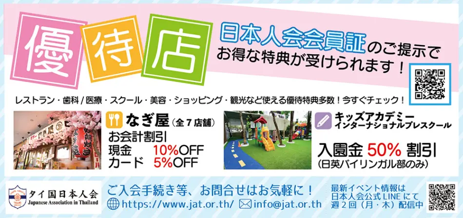 タイ国日本人会の会員証提示でお得な優待店割引が受けられる