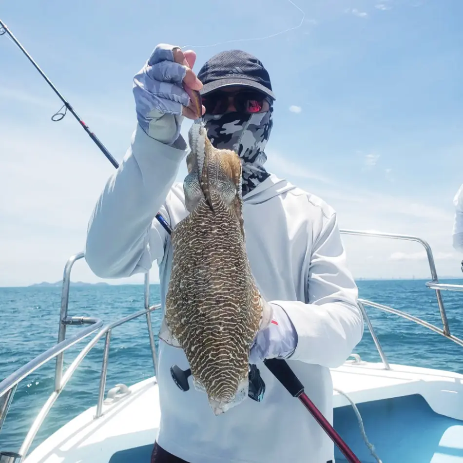 アワセが決まるとイカは水を噴射して逃げようとし、サオ先がリズミカルにグングンと引っ張られます。大型になれば何メートルもラインを引き出されることもあり手応えは充分です。