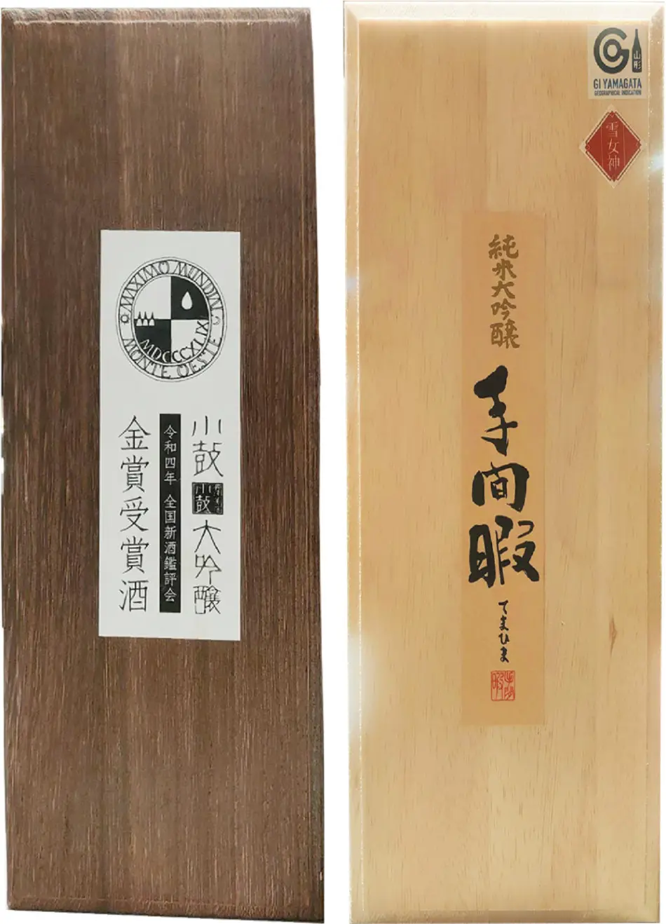 贈り物にも喜ばれる箱入りの純米大吟醸も入荷しています。最近では、令和4年の全国新種鑑評会で金賞を受賞した「小鼓大吟醸」も販売しています。兵庫県の丹波の酒造会社で山田錦を精米歩合40%まで磨いた原料を使用しています。