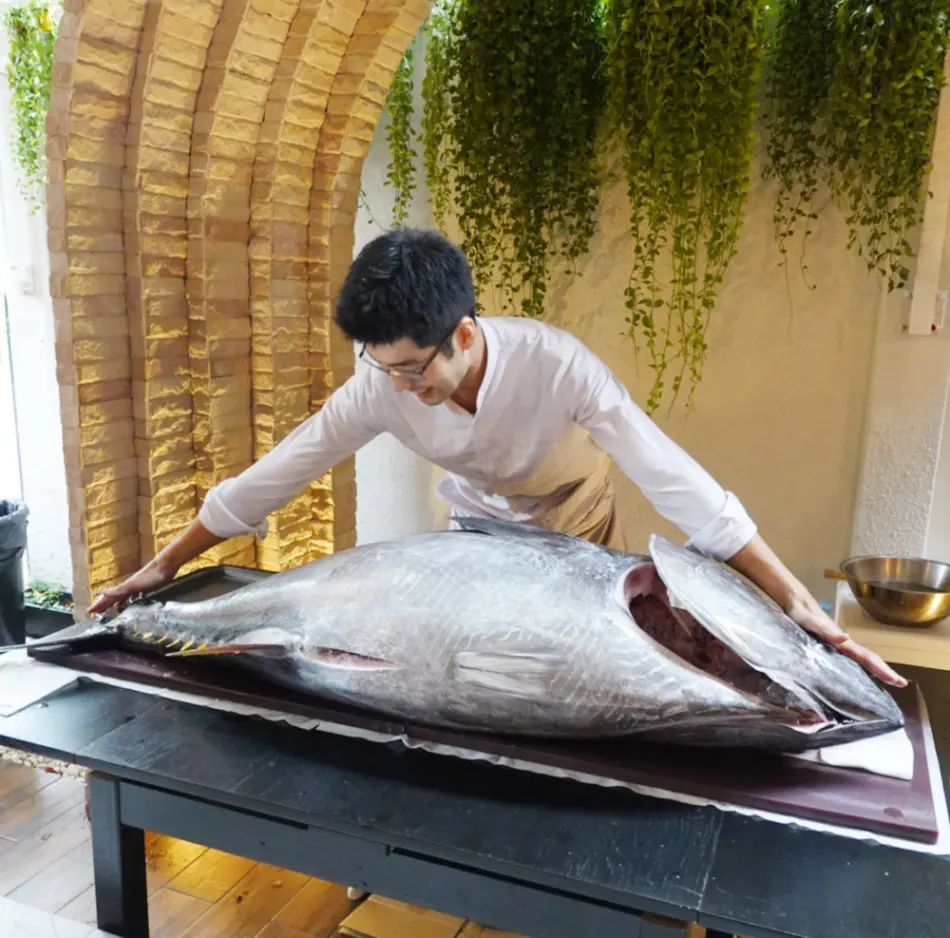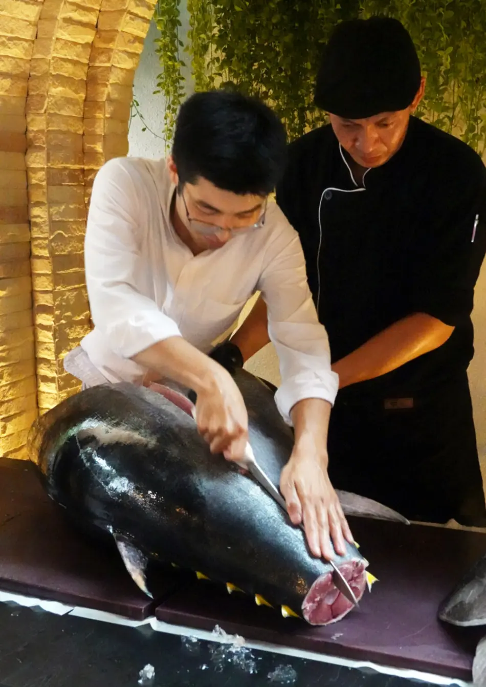 なだや酒店直営「フルーティア(Fruitea)」1周年イベントでマグロ解体ショー