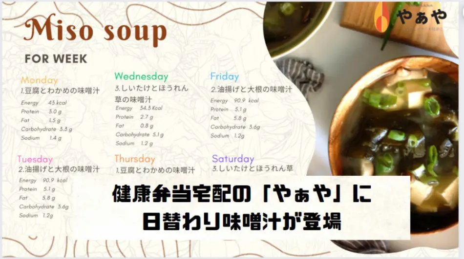 健康弁当宅配の「やぁや」に日替わり味噌汁が登場