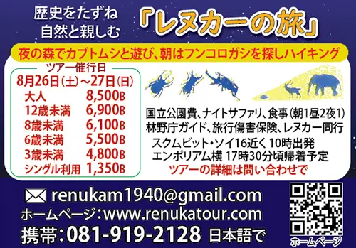 バンコク発着の楽しい旅を催行している「レヌカーの旅」では、8月26日(土)から27日(日)にかけて、1泊2日のツアー参加者を募集しています。