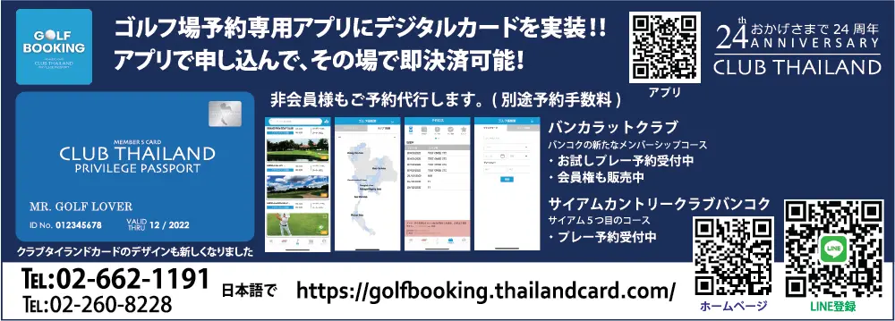 ゴルフ場までの送迎も安心の黄色ナンバーのミニバンを有料で手配しており、ゴルフ以外にもディナークルーズや商業施設の格安チケットも有料で販売しています。この機会にぜひ、駐在員御用達のお得で便利なクラブタイランドカードを申込んで、タイで有意義な旅行を楽しんでください。