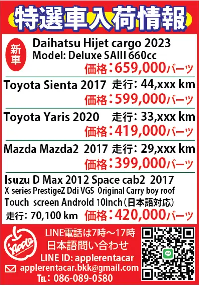 「アップル」で中古車も販売中!いすゞの7万キロで42万バーツ