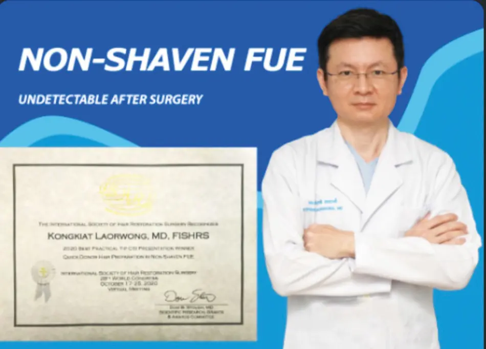 普段の髪型そのままでできるノンシェーブンFUEという方法は術直後の見た目が変わらないため手術したことがバレません。同クリニックのコンキアット先生はこの方法の技術力の高さで世界