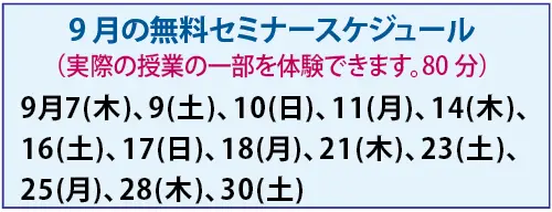 定期的に開催される無料セミナー(80分)では実際の授業の一部を体験できますので、ぜひ一度日本語の面白さに触れてみて下さい。途中で本帰国になった場合も、日本国内継続受講制度があるので安心です。