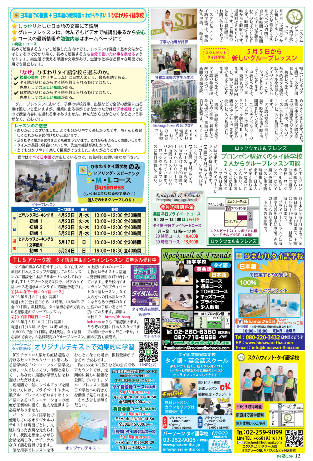「スクムビットタイ語学校」5月5日から新しいグループレッスン
