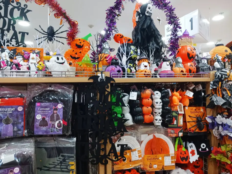 今の季節はハロウィン関連商品が充実していて、装飾品やコスプレグッズなど多数取り扱っています。