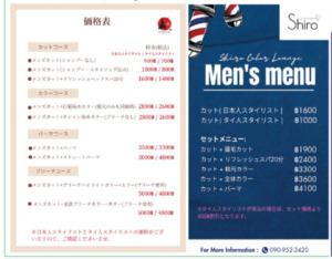 | メンズカット | ฿1,600 | ฿1,000 |