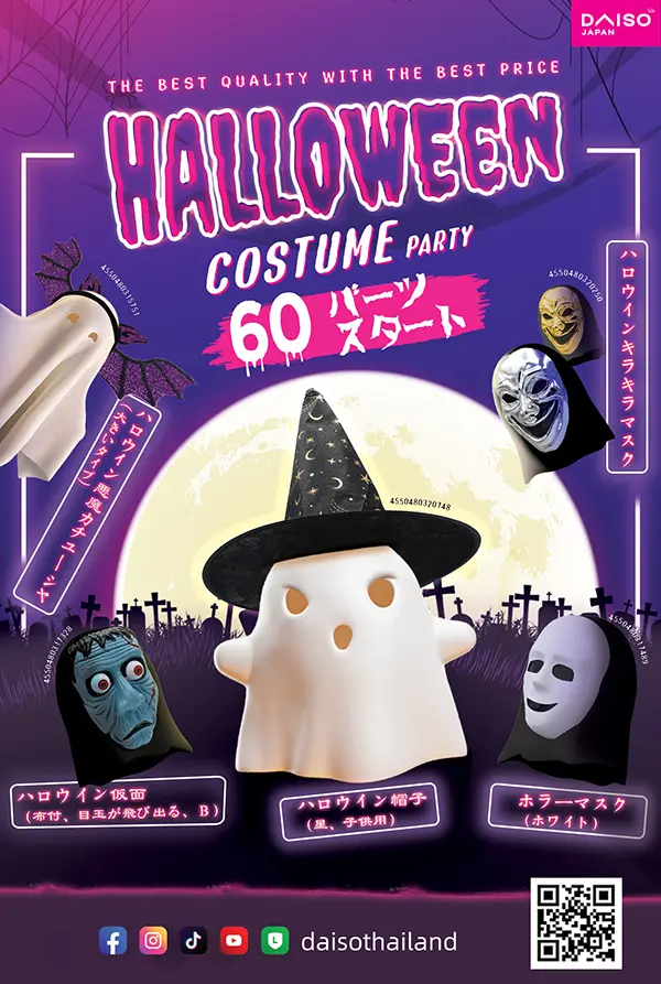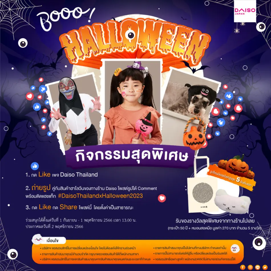 タイでも多店舗展開している「ダイソー」では、フェイスブックでハロウィンイベントを開催しています。参加方法はダイソータイランドのフェイスブックページで公開しています。下記リンクから参加できます。