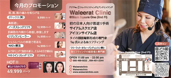 興味のある方は、サイアム スクエア・ワン2階(BTSサイアム駅)の「ワリーラットクリニック」までお越しください。待たずに診察してもらうには@waleerat 経由でオンライン予約することをお勧めします。