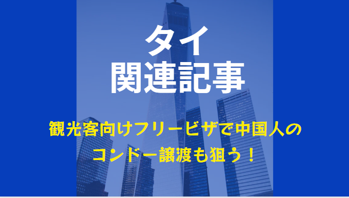観光客向けフリービザで中国人のコンドー譲渡も狙う!