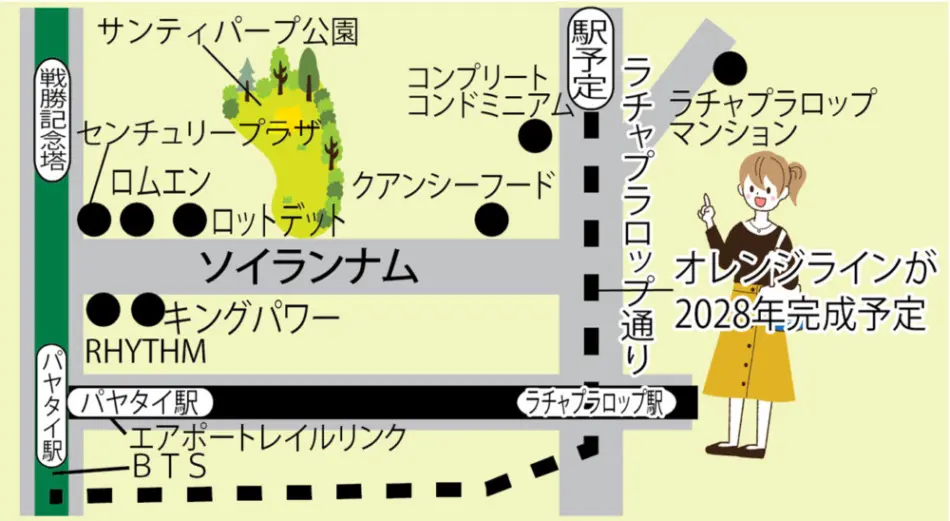 このように、現在でも格安アパートは残っていますが、今後オレンジラインができることで、ランナム通りからラチャプラロップ通りにかけてはさらに発展するでしょう。