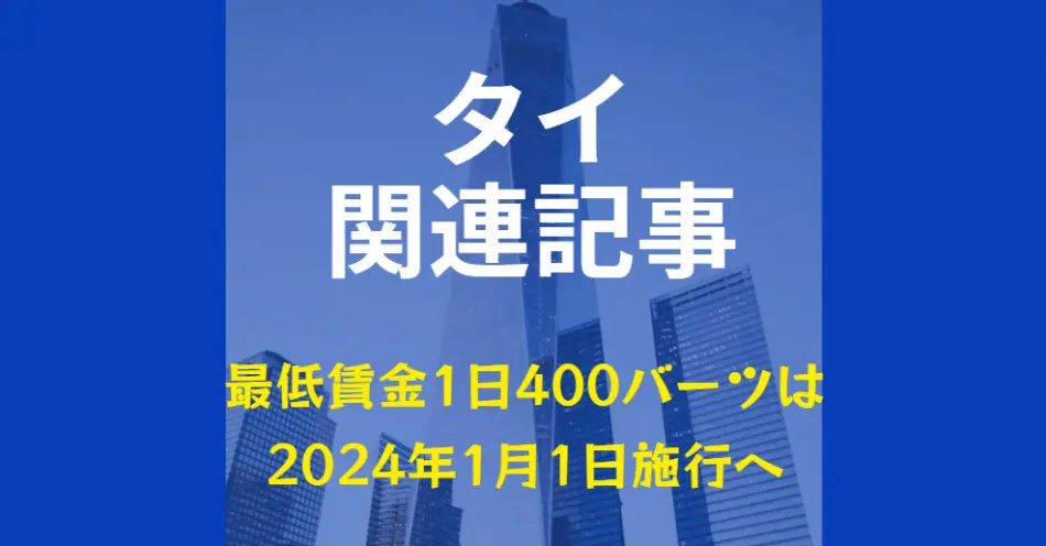 タイでは新政府となり、「1日400バーツ」の最低賃金を2024年1月1日から実施することになり、11月中には内閣が詳細を決定する見込み。