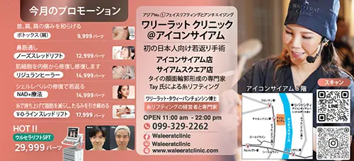 興味のある方は、サイアム スクエア・ワン2階(BTSサイアム駅)の「ワリーラットクリニック」までお越しください。@waleerat 経由でオンライン予約することをお勧めします。