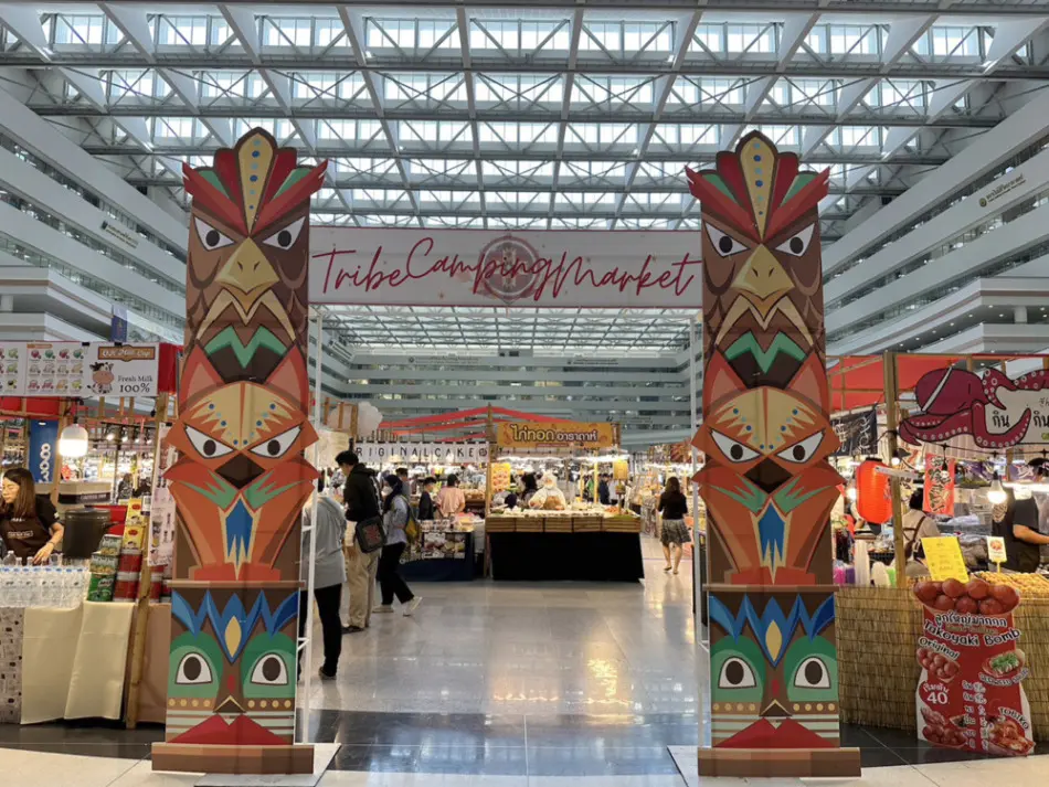 そして、初のイミグレーションに潜入!イミグレーションの中心部に行くと、目の前が急に開き広々とした空間が現れてびっくりしました。何度もイミグレーションに来ている人でも、初めて来た時「ひろっ!」と思ったでしょう。そんな中心部エリアの半分の敷地に、衣類から食べ物までの出店がたくさんありました。出店には、食べ物以外にタイの伝統衣装や家電、車までもが販売されていて、時間潰しにはちょうど良いと思いました。今日は出店はありましたが、出店がない日もあるようです。出店のほかにもイミグレーション内を歩いていると、フードコートや、コンビニ、カフェなどがたくさんあったので便利だなと思いましたが、16時過ぎにもなると閉まっているお店が多かったです。